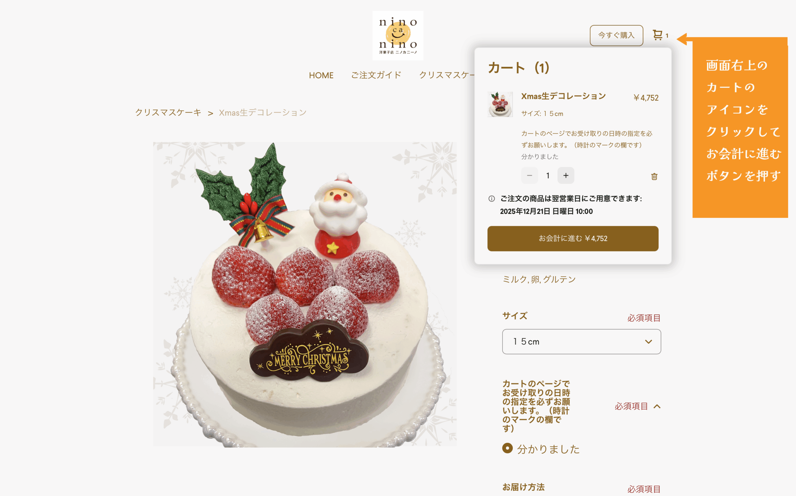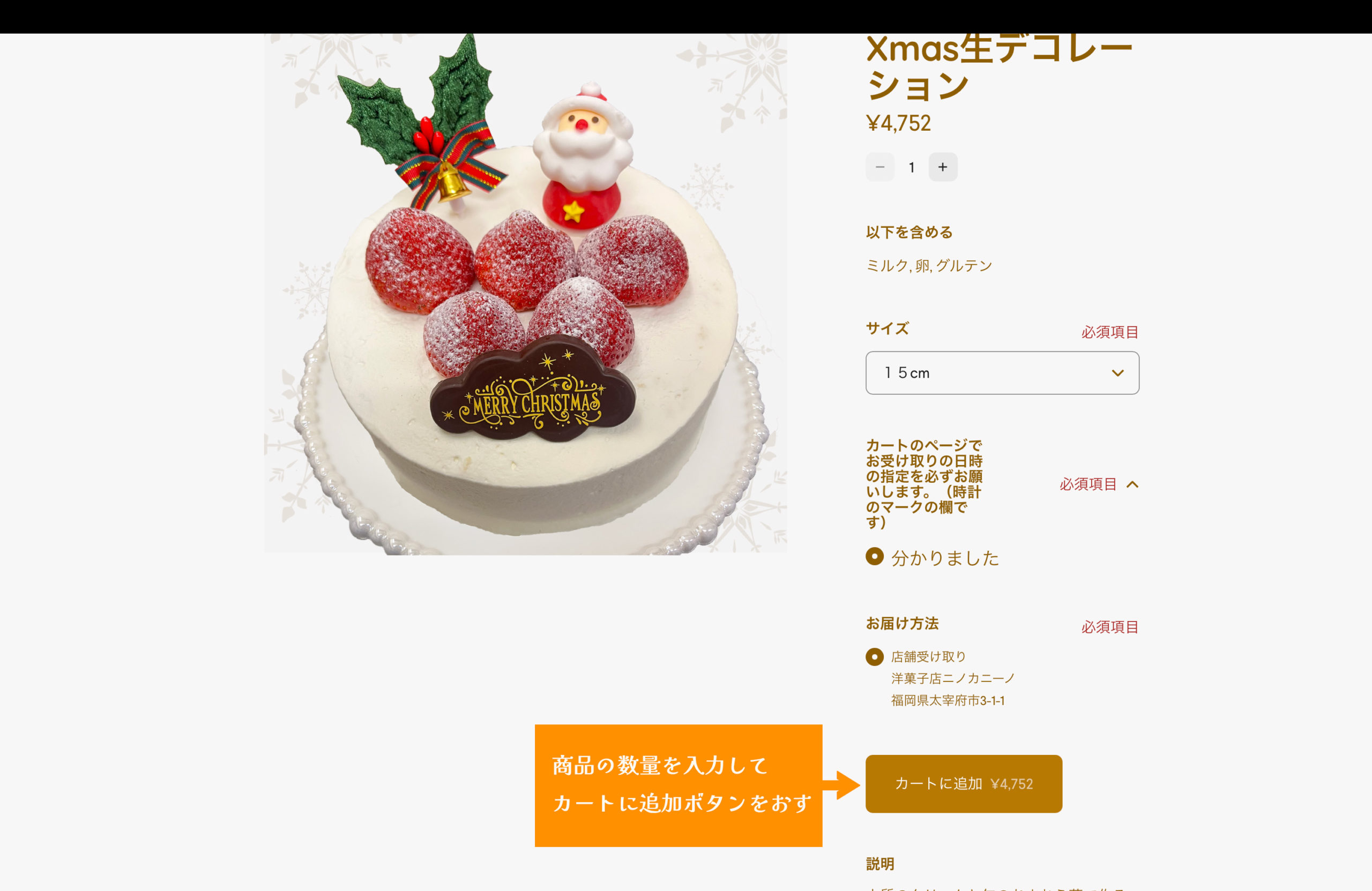 ご希望の商品ページから数量、サイズ(生デコレーションの場合)を選んで
